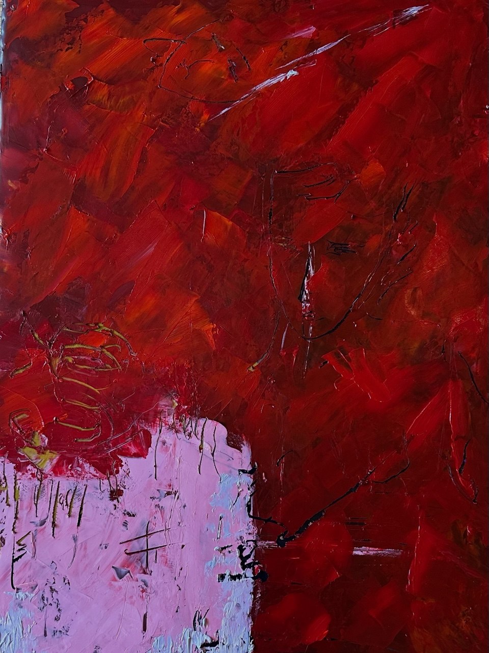 My work moves through layers of memory, emotion, and time ,from abstraction to collage, from love to irony. Each series speaks a different dialect of the same inner language: the language of presence and absence, of what remains after love, loss, or laughter. In my abstracts, color becomes breath ,a meditation on the invisible. In collages, torn papers remember what paint forgets , fragments of home, belonging, and displacement finding new form. In How to Love, tenderness and pain intertwine; it is not a guide, but a confession , of what it means to remain open when everything asks you to close. And in the Pink Panther series, irony meets affection; the soft pink becomes both mask and mirror, revealing the fragile courage of being human. Across all of them, I explore how memory inhabits the body , how we carry our stories in texture, color, and the quiet space between gestures. Perhaps every painting is a question disguised as a form, a way to ask again and again: If love and memory are what keep us human, what happens when both begin to fade?