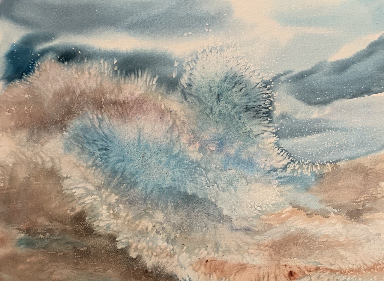 In my watercolors, I let the pigment move freely — like memory carried by water. Each wash becomes a breath, a pause, a moment of silence that remembers light.